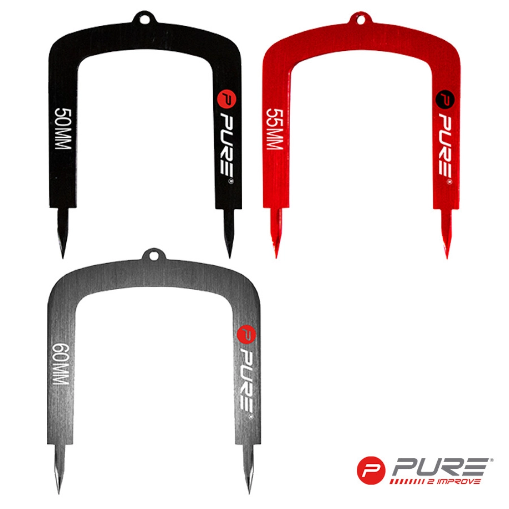Enhance your putting precision with the Pure2Improve Golf Putting Gates. These innovative training tools provide instant feedback on your putting line and aim, helping you improve your accuracy and consistency on the greens. The set includes three gates of varying widths—50mm, 55mm, and 60mm—allowing you to adjust the difficulty as your skills progress.